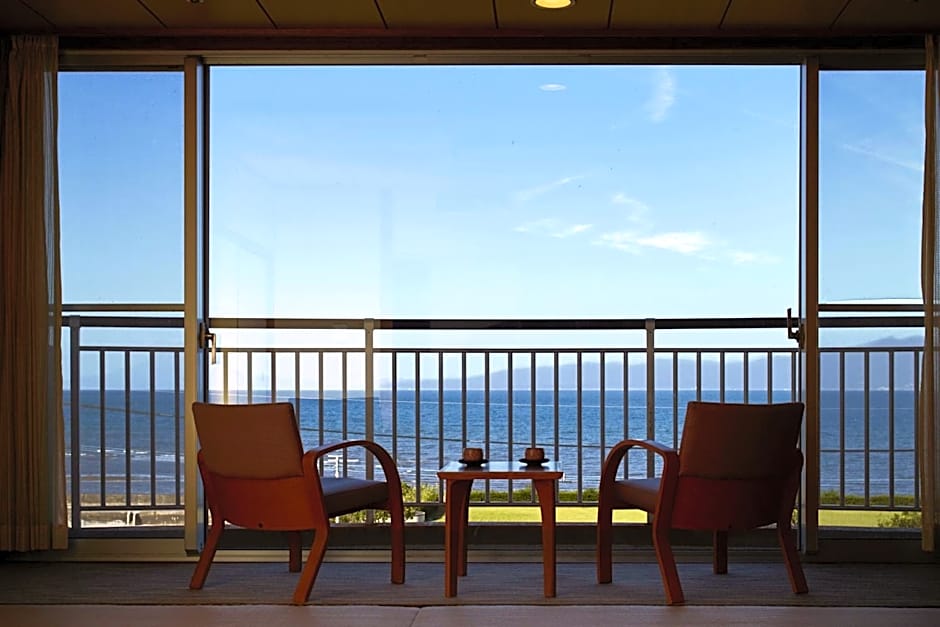 The quadruple room has tatami floors and offers a wardrobe, yukata and sea views. The unit has 4 futons.